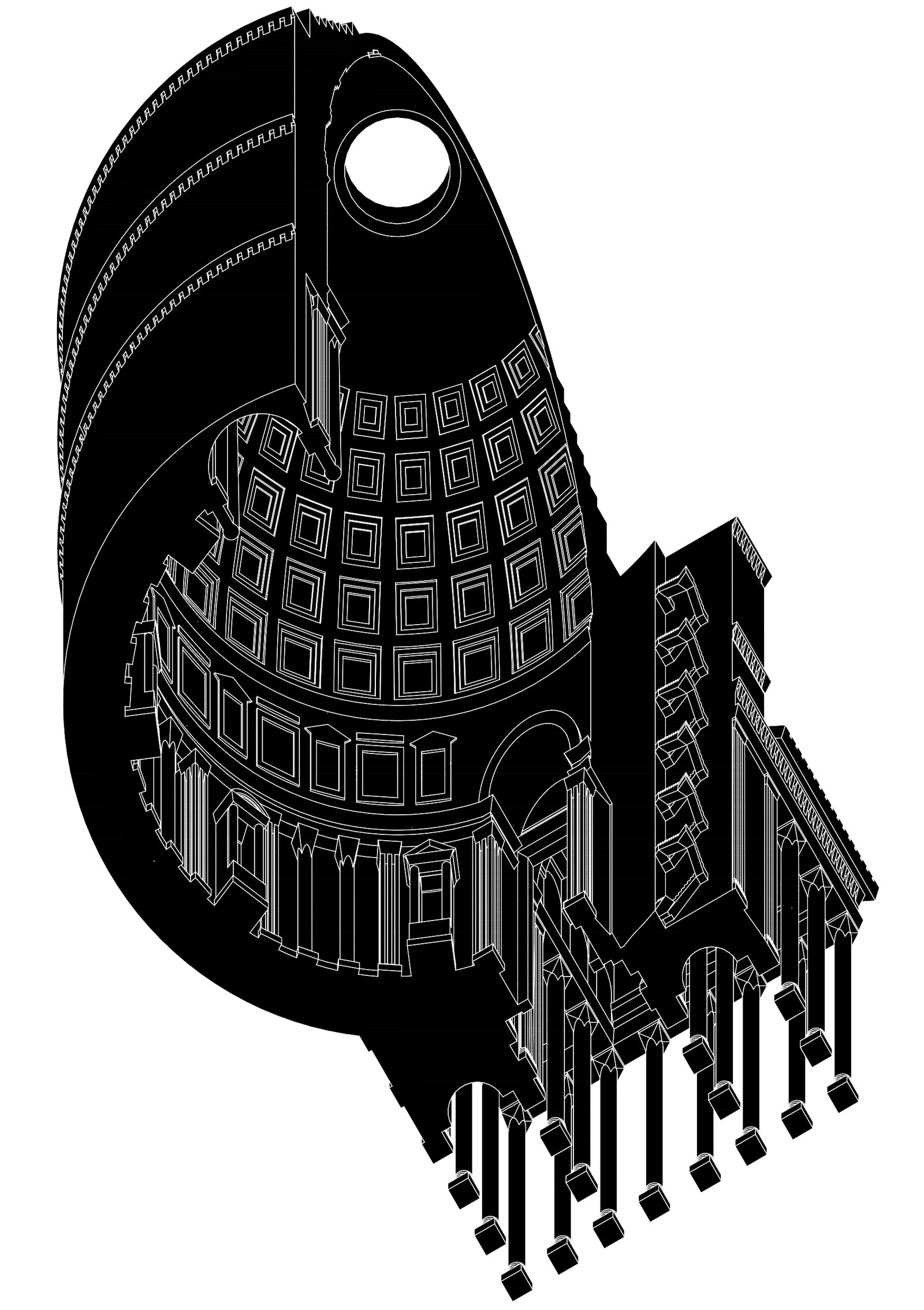 Si algo condiciona el diseño del Panteón, es su rigurosa geometría y su condición matemática. La esfera es el elemento central que define a esta especie de panóptico cósmico diseñado para conectar el mundo terrestre con la morada de los dioses celestes. El Panteón está dedicado a los siete dioses celestes de la mitología romana: el Sol; la Luna; Marte; Mercurio; Venus, Júpiter y Saturno.