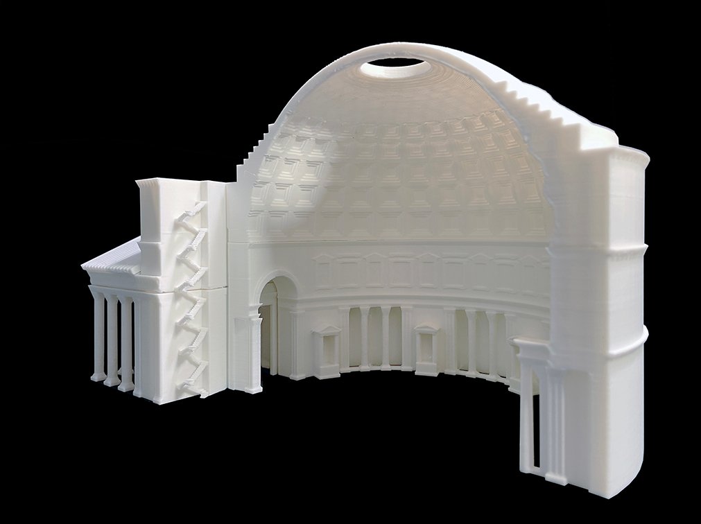 Además, si trazáramos esa esfera perfecta y la encerramos en un cubo, la longitud de sus aristas es de dos radios y si prolongáramos dos líneas desde los puntos en los que el diámetro de la circunferencia toca el fondo de los ábsides hasta el centro del óculo formaríamos un triángulo equilátero perfecto. El Panteón es una oda a la suma pitagórica y su idea de proporción, como representación del orden sobre el caos.