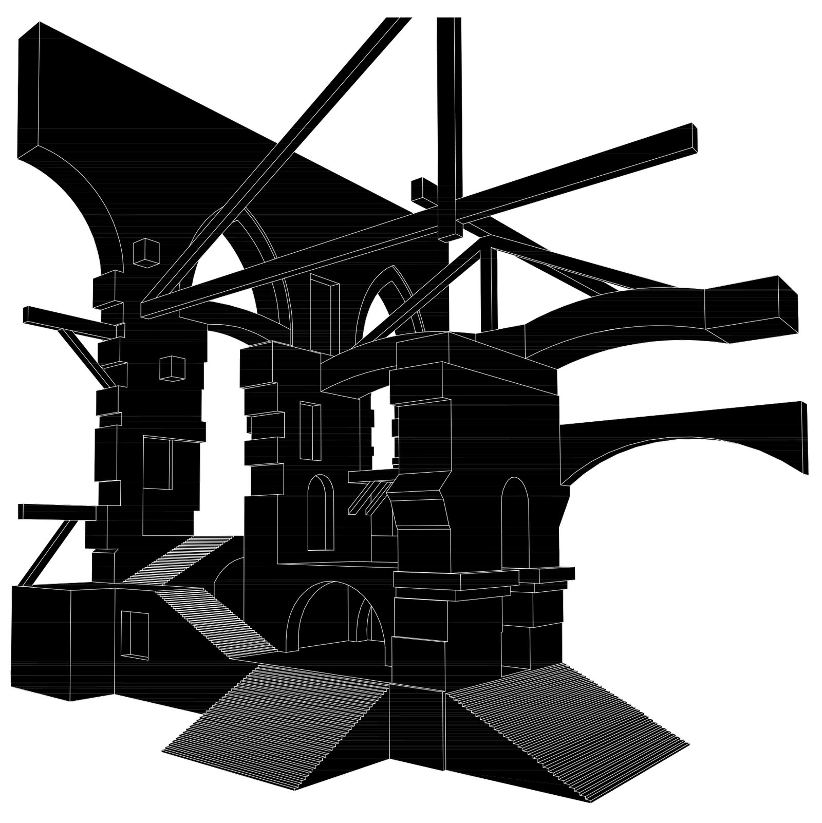En estas cárceles, la piedra se convierte en pensamiento. Las bóvedas se multiplican como ecos de un sueño repetido, los muros se abren hacia lo infinito, y las sombras insinúan más de lo que muestran. Las escaleras ascienden y descienden sin fin, se cruzan en direcciones opuestas, se interrumpen en el vacío o desaparecen en la penumbra. No conducen a ninguna parte, o quizá conducen al interior mismo de la mente que las imagina. En su estructura se revela el intento humano de ordenar el caos, de construir un sentido en el abismo. Pero cada peldaño es también un paso hacia la perdición: subir no garantiza la salida, y descender puede equivaler a comprender.