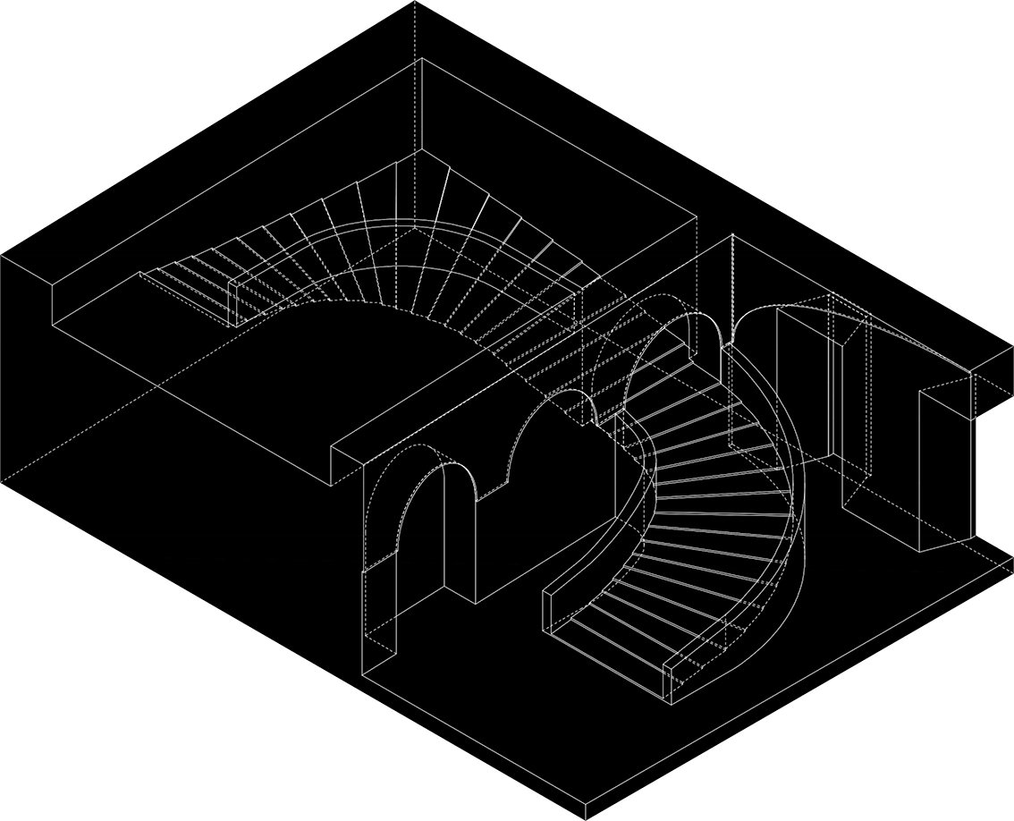 El proyecto de las Scuderie, vinculado a arquitectos como Ferdinando Fuga y Domenico Fontana, se inserta en la larga tradición de la arquitectura papal de servicio, donde la eficiencia técnica convivía con el decoro representativo. En la topografía irregular del monte Quirinal, la rampa-escalera se configuró como una pieza clave para articular los flujos de movimiento: su traza combinaba tramos rectos de pendiente moderada con descansos amplios y una cuidadosa iluminación natural, garantizando la seguridad de los caballos y la facilidad de limpieza y ventilación del espacio. La rampa del Quirinal pertenece, por tanto, a una genealogía de rampas ecuestres que se remonta al Renacimiento, siendo su antecedente más célebre la rampa helicoidal de Bramante en el Vaticano (1507). Este dispositivo, ideado para permitir el acceso de caballos y carruajes al Belvedere papal, representó una revolución tipológica al transformar el problema del ascenso en una experiencia espacial continua. Como señala Norberg-Schulz, “en Bramante, la circulación se convierte en arquitectura: el movimiento ascendente se traduce en forma”. La rampa del Quirinal retoma esta lección bramantesca, pero la adapta a las exigencias más pragmáticas del siglo XVIII: sustituye la espiral ideal por tramos funcionales y ventilados, reflejando un pensamiento técnico avanzado propio de la era de la Ilustración.